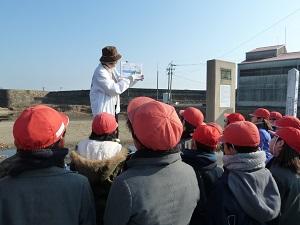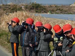 今日、1月24日(木)に、3年生の皆さんが、鶴の観察、干拓の学習を行いました。