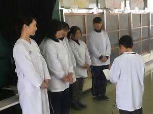 「給食は、どのようにして作られているか」では、大きな釜で煮炊きする様子やご飯を炊くための6つの釜、食品を洗うための大きなシンク、野菜を切っている様子などを写真や動画で見せていただきました。308人分を5人の調理師さんで作っておられます。すごいですね。