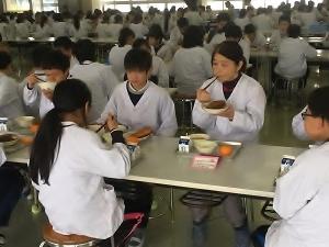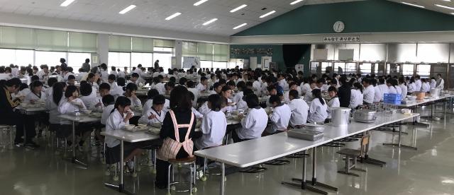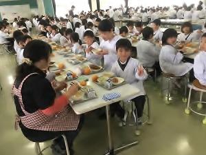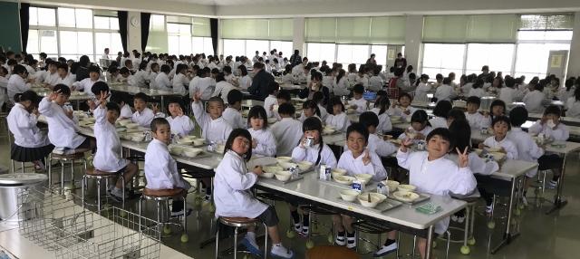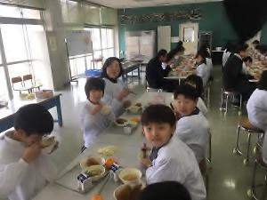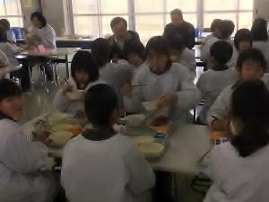 はじめに、児童代表からのお礼の言葉があり、その後、各学年に入っていいただき、楽しく話をしながら、一緒に給食を食べました。