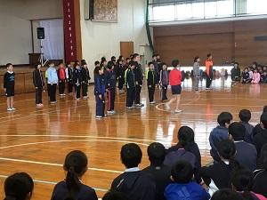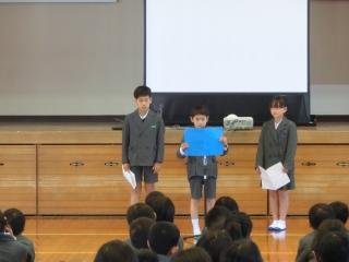 県の絵画展の表彰と、玉名郡市のバスケットボール4年生大会の準優勝の表彰を行いました。