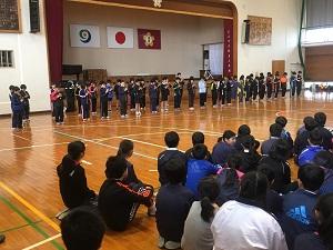 有明中学校の生徒さんと先生が、運営委員の皆さんと一緒にあいさつをしてくださいました。