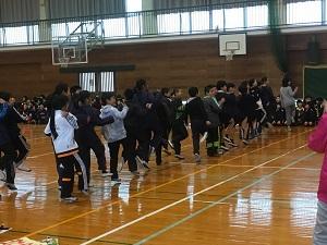今日(1月25日)、体育館で「給食集会」を行いました。