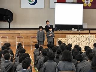 横島小学校が、みんなが仲よく、楽しく通える学校になるように、がんばってほしいと話しました。