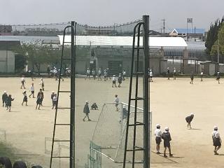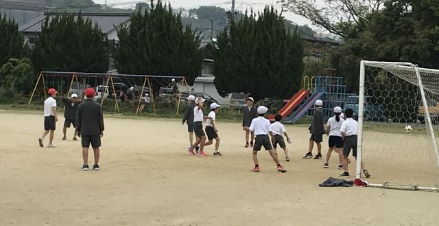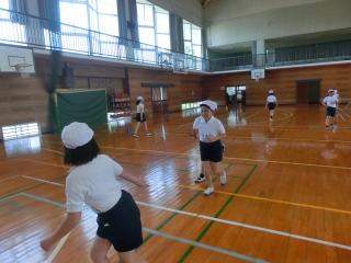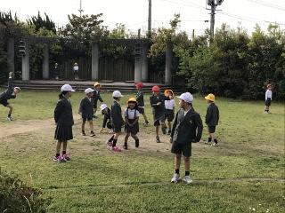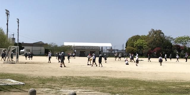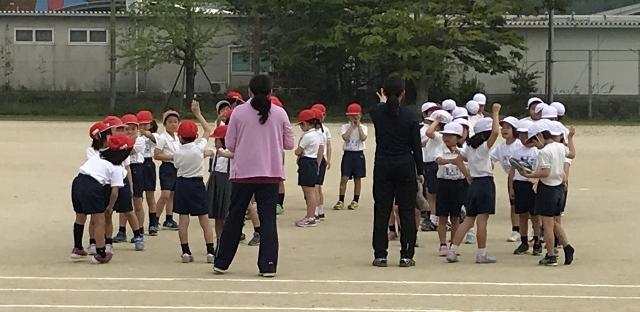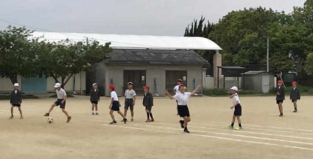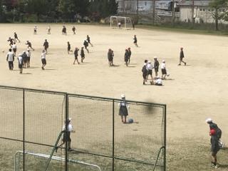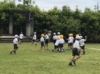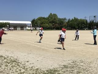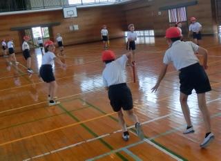 5月12日(日) 先週4年生が、体育でバトンパスの練習をしていました。