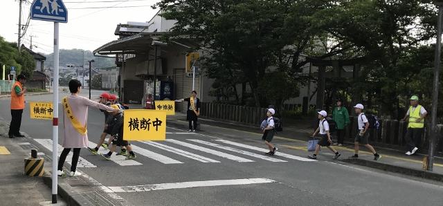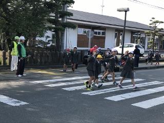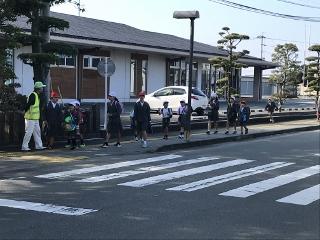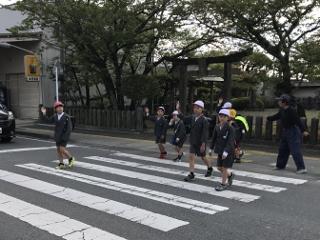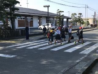正門で交通指導をしていると、遠くから、「おはようございます」と元気のいい声が聞こえてきます。また、正門前では、きちんと立ち止まって、礼をして挨拶してくれる子どもたちが増えました。