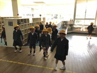 4月18日(木) 朝、外遊びを終えて、教室に入っていくところです。黄色い帽子の子供達、全てがかわいいです。