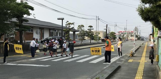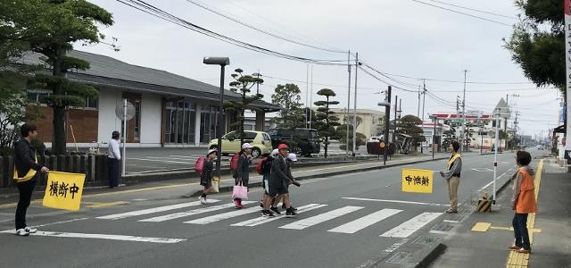 4月22日(月) 今朝は、PTAのかたにも登校指導をしていただきました。「栗の尾」「外平」「九番」「イチゴ集荷場」「マルエイ交差点」「八番ポンプ小屋前」「学校前」の7箇所で行っていただいています。学校前は、交通量もあり、直線なのでスピードが出ている車もあります。本当にありがとうございます。