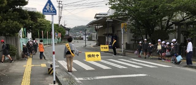 5月8日(水) 昨日の登校の様子です。多くのボランティアの方に見守りをしていただいています。本当にありがとうございます。