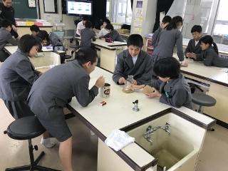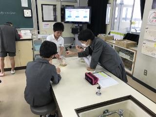 4月24日(水) 昨日のことになりますが、授業を見て回っていると、理科室で実験が行われていました。燃焼実験です。みんな真剣な表情で行っていました。