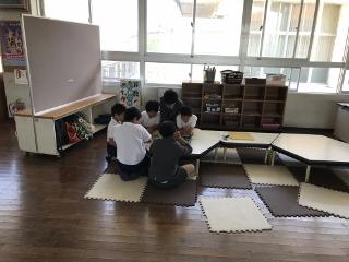 5月7日(火) 宿題の答え合わせをしている子供達や将棋などで遊んでいる子供達です。