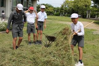 5月9日(木) 7日(火)と8日(水)の昼休みに、6年生の有志がボランティアで、除草していた大量の草を片付けてくれていました。とてもありがたかったです。6年生のみんなありがとう。天気がよくなったら、またお願いします。