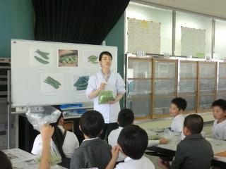 5月12日(日) 先週、2年生がグリンピースの皮むきをしました。食育の一環です。福島先生から説明を聞いた後、みんなでがんばりました。自分たちで、皮むきをしたのを食べると一段とおいしく感じたのではないでしょうか?