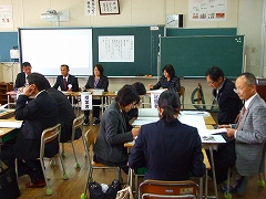 上段は、授業のようすです。下段は、その研究会のようすです。