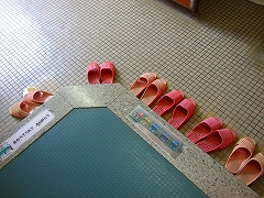 右:低学年女子トイレのスリッパ 頑張ってるね