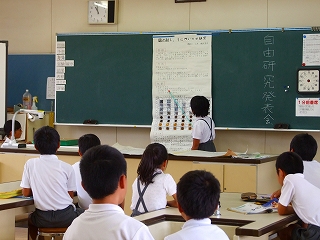6年2組は、理科の時間に「自由研究発表会」を行ってました。
