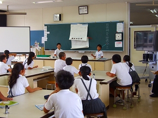 | 1年2組:天までとどけ1.2.3! | 2年1組です。算数の時間に意見の交流をしています。 |