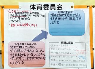 10月13日(日) 前期が終わったのに合わせて、委員会活動での振り返りがありました。子供達なりに前期を振り返り後期の取組を考えてくれています。