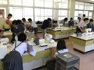 10月29日(火) 1・2校時に5年2組、3・4校時に5年1組の家庭科でナップザックづくりがありました。ミシンを使った活動は、とても担任一人では対応できませんので、地域の方7名に一緒に指導をしていただきました。大変ありがとうございました。写真は、3校時目の様子です。