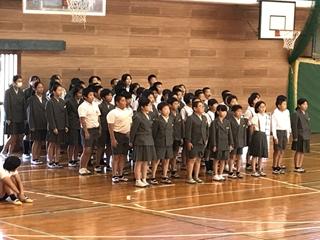 10月15日(火) 後期始業式の様子です。私と児童3名が後期に頑張ることを伝えました。私からは、3つの課題を提示して、先生方と児童と一緒に改善していくことを確認しました。また、後期に取り組む「いちごマラソンプロジェクト」についても伝えました。気分一新、新しい目標をもって後期に臨みたいと思います。