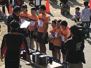 11月2日(土) 駅伝の表彰式の様子です。上位3チームと区間賞を獲得した子供達の写真です。