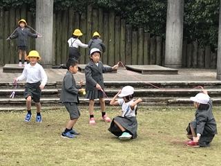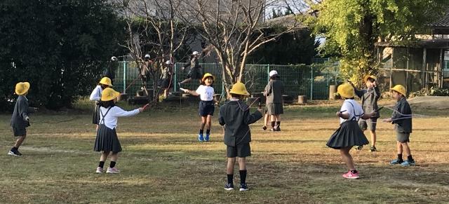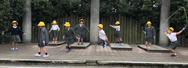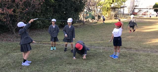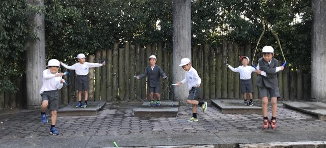 11月13日(水) 朝のグリーンステージでは、1年生の子供達が、縄跳びを楽しそうにしていました。