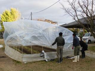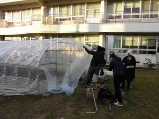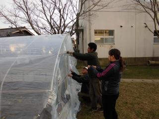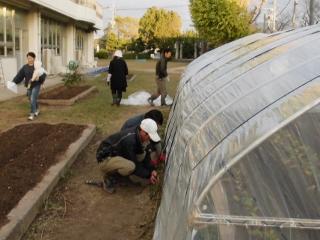 11月21日(木) 今週の19日火曜日に、3年生のイチゴ栽培用のビニールハウスを学年委員さん他4名で建てていただきました。