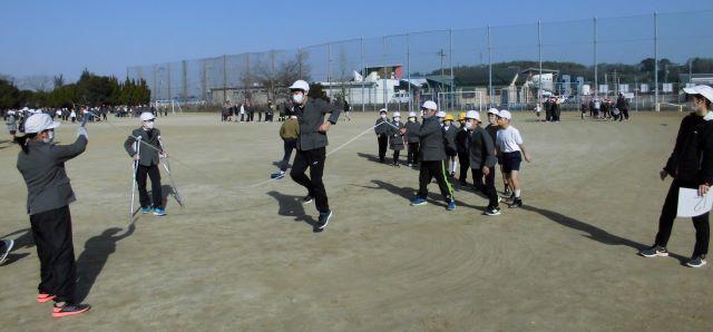 1月20日(水)5校時、5年生と2年生が縄跳び大会を行いました。午後は一気に天気が良くなり暑い?ぐらいでした。