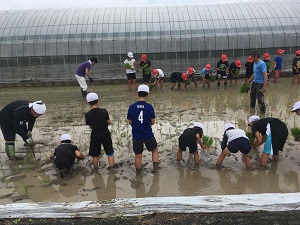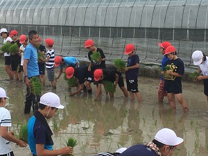 学校運営協議会委員の前川さんのお世話で、水田や苗を用意していただき、貴重な経験をすることができました。当日は、保護者の方や地域の方にも応援をいただきました。ありがとうございました。