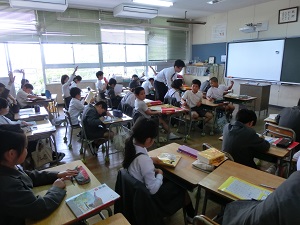7月12日(木)の3時間目、4時間目に、能・狂言のワークショップを行いました。