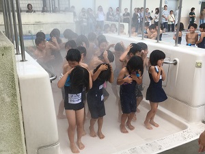 1年生のプールに入る準備風景です。 2年生は、もう大きなプールもスイスイです。