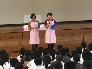 児童代表の人が3人、後期の目標を話してくれました。後期も、みんなで目標に向かってがんばりましょう。