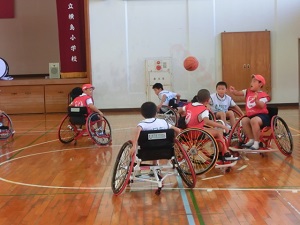 車いすでのバスケットボールは、やはり、コントロールが難しく、苦労していましたが、楽しく行うことができました。