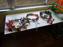 サツマイモの蔓を使って、クリスマスリースをつくってます。