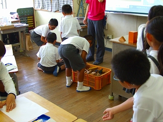 4年生のソーラー電池の実験のようすです。ソーラーの実験にはもって