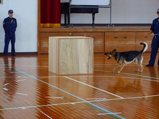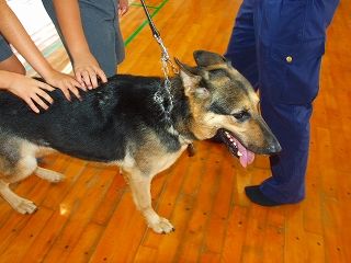 利口な警察犬ですから、子どもたちが触っても、平然としています。