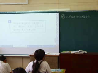 2年生です。わかりにくいですが、スクリーンには問題が書かれています。
