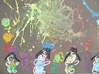 1年生の芸術作品が、並べてありました。主題は、「花火」です。