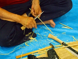 右が竹とんぼづくりのようすです。他にも、ひょうたん飾りつくり、お手玉づくり、牛乳パック利用小物
