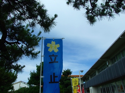 写真は、「立止一礼」の幟を運営委委員会のメンバーの一人が