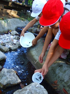 | 丁寧に放流します。 | 大きくなって! |