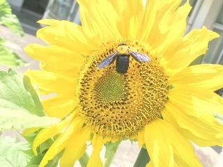 7月15日(水) 放課後3人がひまわりのお世話をしてくれていました。花もきれいに咲いています。ミツバチとカナブンが蜜?を吸っていました。