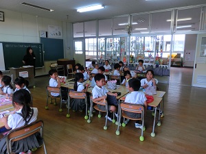 1/30(水) 給食の先生方と一緒に給食を食べる「ありがとう給食」がありました。先生方と会話を楽しみながら、おいしくいただきました。