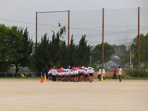 5/17(木) 今日から運動会の全体練習が始まりました。業間と3時間目を使って練習をします。今日は、入場行進の練習でした。一年生もがんばっていましたよ。