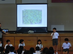 6/1(金) 6月になりました。5時間目に月初め集会がありました。栽培委員会の発表では、校内に咲いているお花の紹介がありました。また、2・4・6年生が音読の発表をしました。