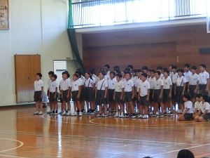 5/23(水) 予定していた総練習は雨のため中止になりました。体育館で開・閉会式の練習を行ないました。ラジオ体操も上手になってきました。