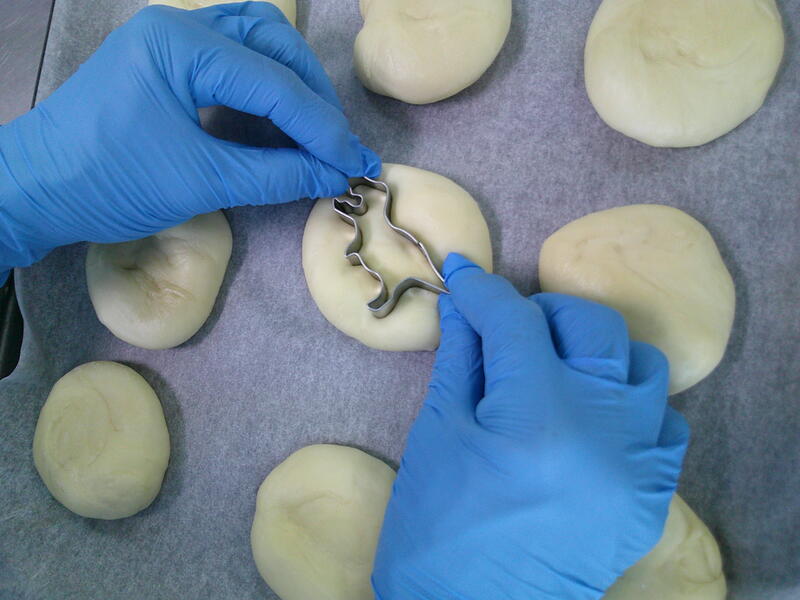 焼き立ての温かくて柔らかい食感に、ほのかな甘みの味と一つ一つにつけられた恐竜やクローバーなどの型がうれしくて、とてもおいしい丸パンでした。