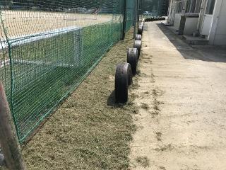 10月4日(日) 2日(金)の放課後、遊具やフェンス、タイヤ周辺部を整備しました。芝刈り機での作業が楽なのですが、このような場所は、刈ることができません。そこで、草刈り機の出番なのです。来週前半で仕上げをし綺麗にしたいと思います。