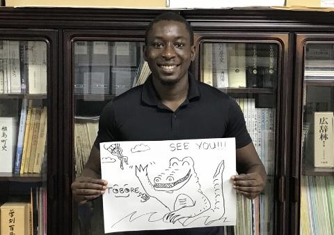 9月7日(月) 本校にALTとして来ていただいているトボーレ先生が、本日来校されました。本来なら横島小学校の子供達と授業をする最後の日だったのですが、台風で臨時休校となったので叶いませんでした。そこで、お別れのメッセージ用紙を持ってこられました。明日全員に配付します。ただ、今後も有明中学校と岱明中学校に勤務をされるので、お会いする機会はあるかもしれません。横島小学校で働くことができて良かったというメッセージを頂きました。トボーレ先生の今後の活躍を祈念致します。