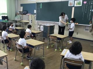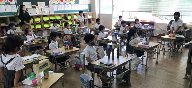 9月3日(木) 3校時、1年2組で、算数「どちらがおおい」の研究授業がありました。1年生は、今年度、学びを初めて3ヶ月ほどしかたっていないのに、「めあて」「見通し」「自分で」「みんなで」「まとめ」「適用問題」「振り返り」に沿って、学習が進んでいました。感心しました。実験の場面では、友だちと協力して活動できていました。
