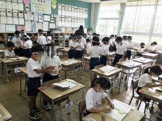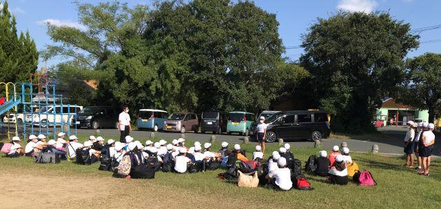 8月20日(木) 夏休みが明けた初日でした。34℃の気温の中、子供達は元気に下校していきました。ただ、遠い子供達は、4km近く歩いて帰ります。熱中症が心配です。先生方には、下校ご通学路の見回りをお願いしました。子供達は、冷却タオルを首に巻いたり日傘を差したりして下校していました。